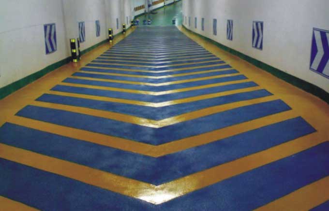 6、防滑面涂:将石英砂均匀铺设于环氧面涂层上,干涸后再涂布一遍面涂材料;